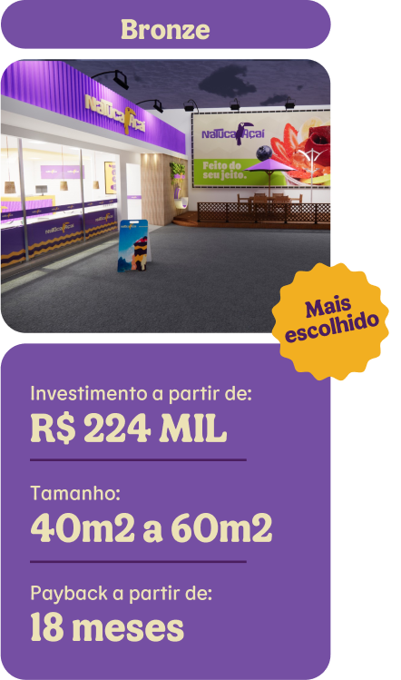 Nós te auxiliamos em todo o processo – desde a escolha do ponto estratégico na região desejada, até a montagem final do espaço. Tudo o que você precisa é dar o passo inicial e agendar sua reunião com nossa equipe para entender os detalhes. Além do suporte técnico, também enviaremos materiais de marketing para auxiliar a divulgação da sua inauguração, e dezenas de posts semanais para te ajudar a impulsionar sua açaiteria nas redes sociais.